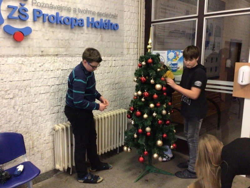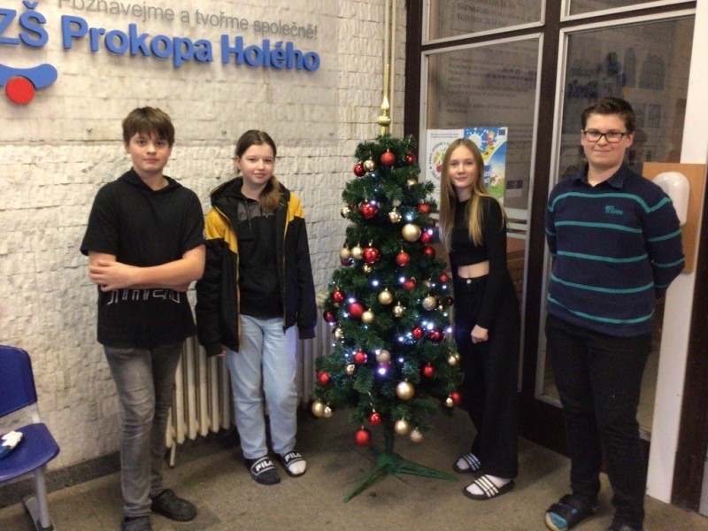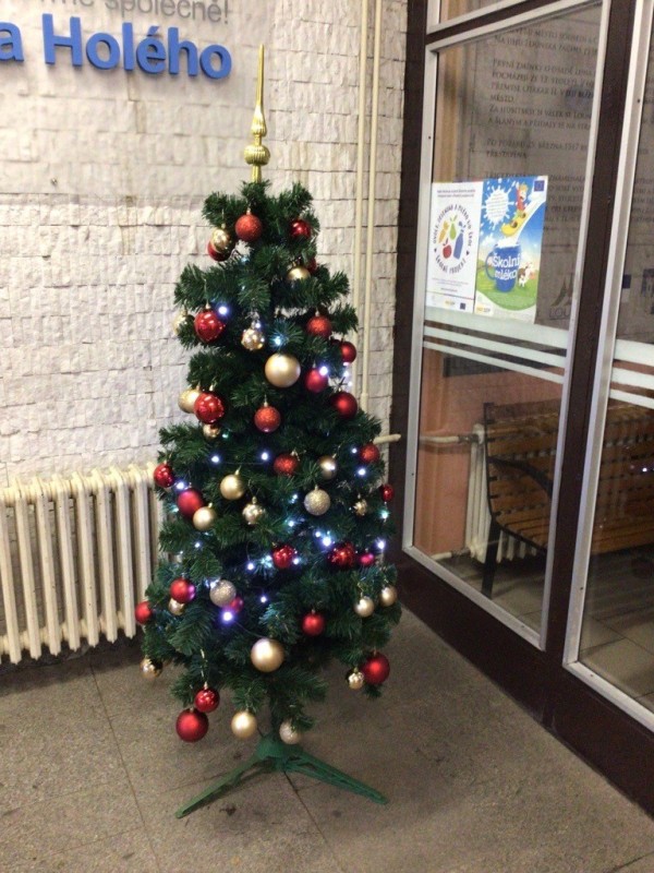 Nadcházejí nejkrásnější svátky v roce, a proto se i ve vestibulu naší školy rozzářil vánoční stromeček. Letos ho krásně pomohli ozdobit žáci z 8. A.