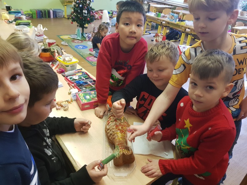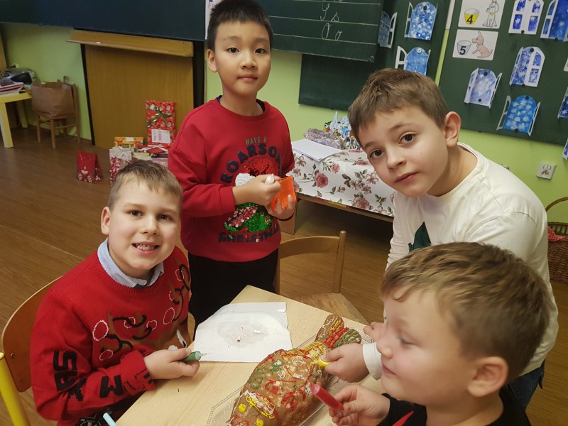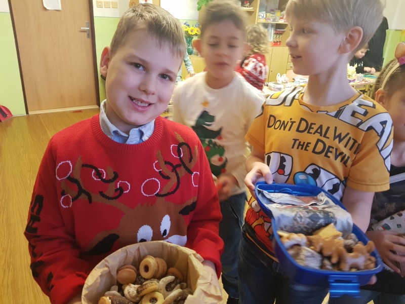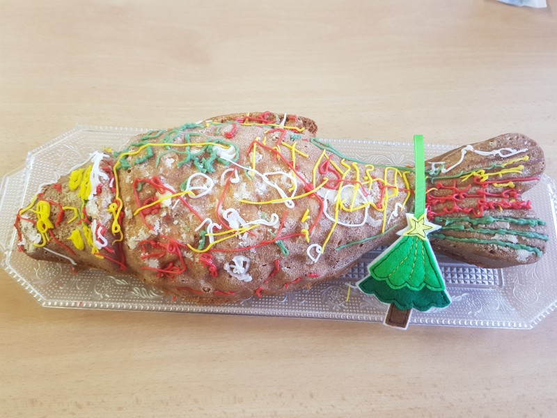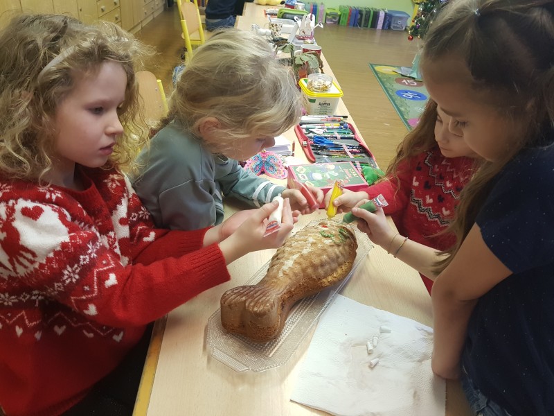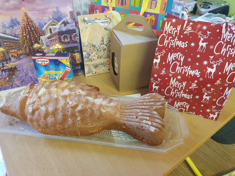 Na naší vánoční tabuli je spousta výborného cukroví, vánočka a nechybí ani ryba, kterou si děti symy ozdobí.
