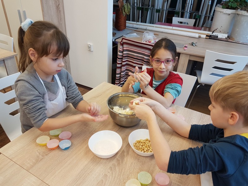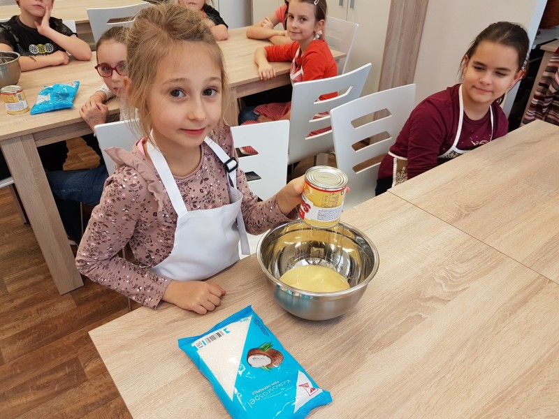 Vánoce jsou za dveřmi a kuchtíci ve školní družině se pustili do cukroví. Zkusili jsme nepečené kokosové kuličky s mandličkou. Cukroví se nám povedlo a moc chutnalo.