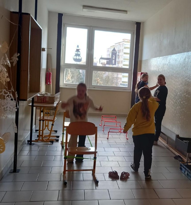 Dnes na celé naší škole proběhl ,,vánoční spostovní den". Žáci z 2.stupně si pro nás připravili ,,opičí dráhu",kde děti uplatnily své pohybové schopnosti. u nás ve třídě jsme absolovovali ,,třídní pětiboj",který obsahoval disciplíny jako zvedání židlí,sbírání sešitů,mazání tabule. Na patře jsme si také vytvořili společně s ostatními třídami různá stanoviště,skákání přes gumu,házení do koše apod. Všichni jsme se parádně vyřádili.