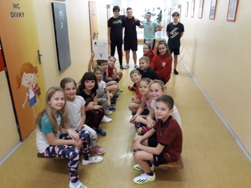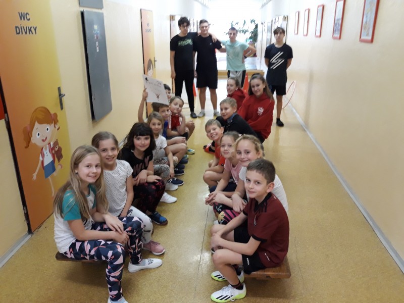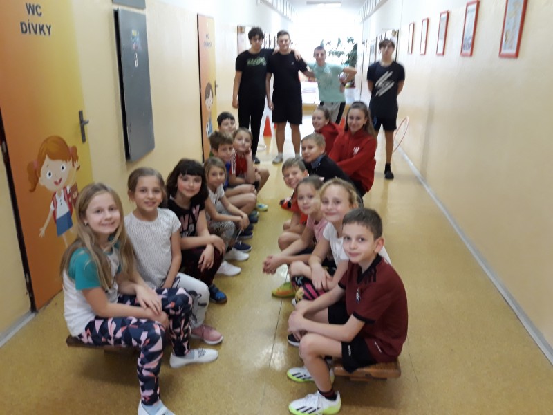 Opičí dráhu pro třetí třídy v rámci sportovního dne pro nás připravily děti