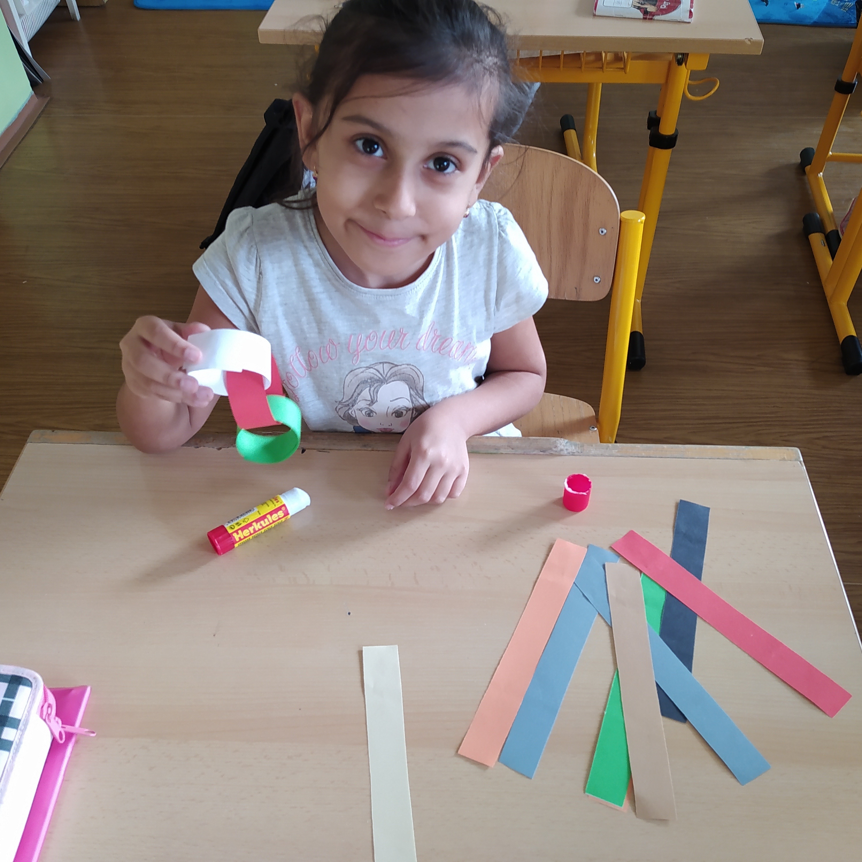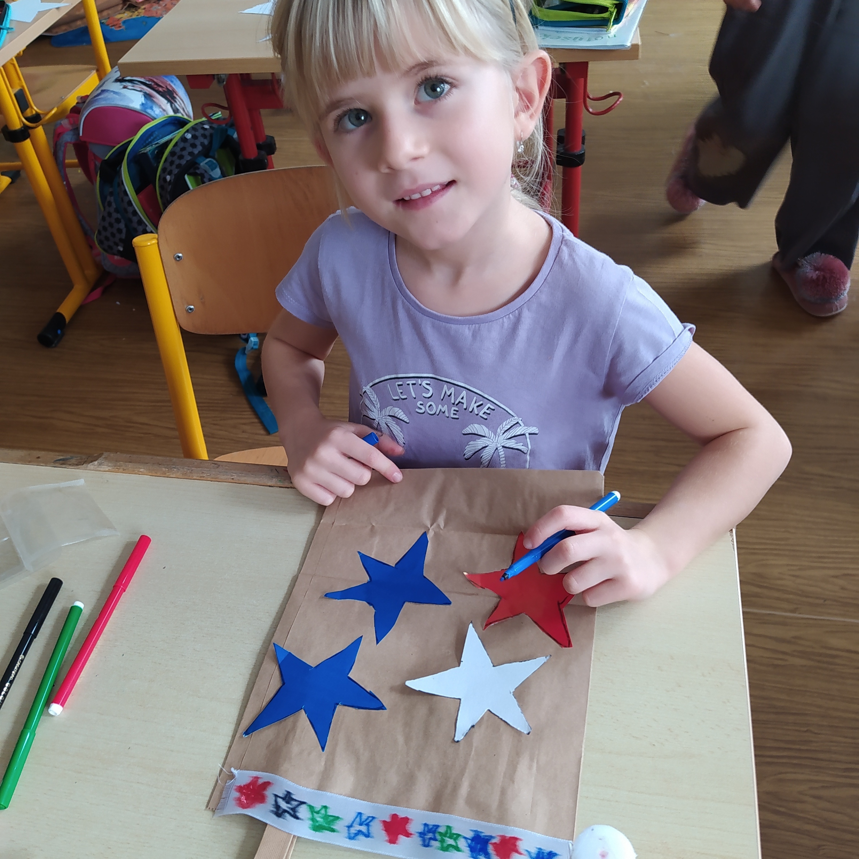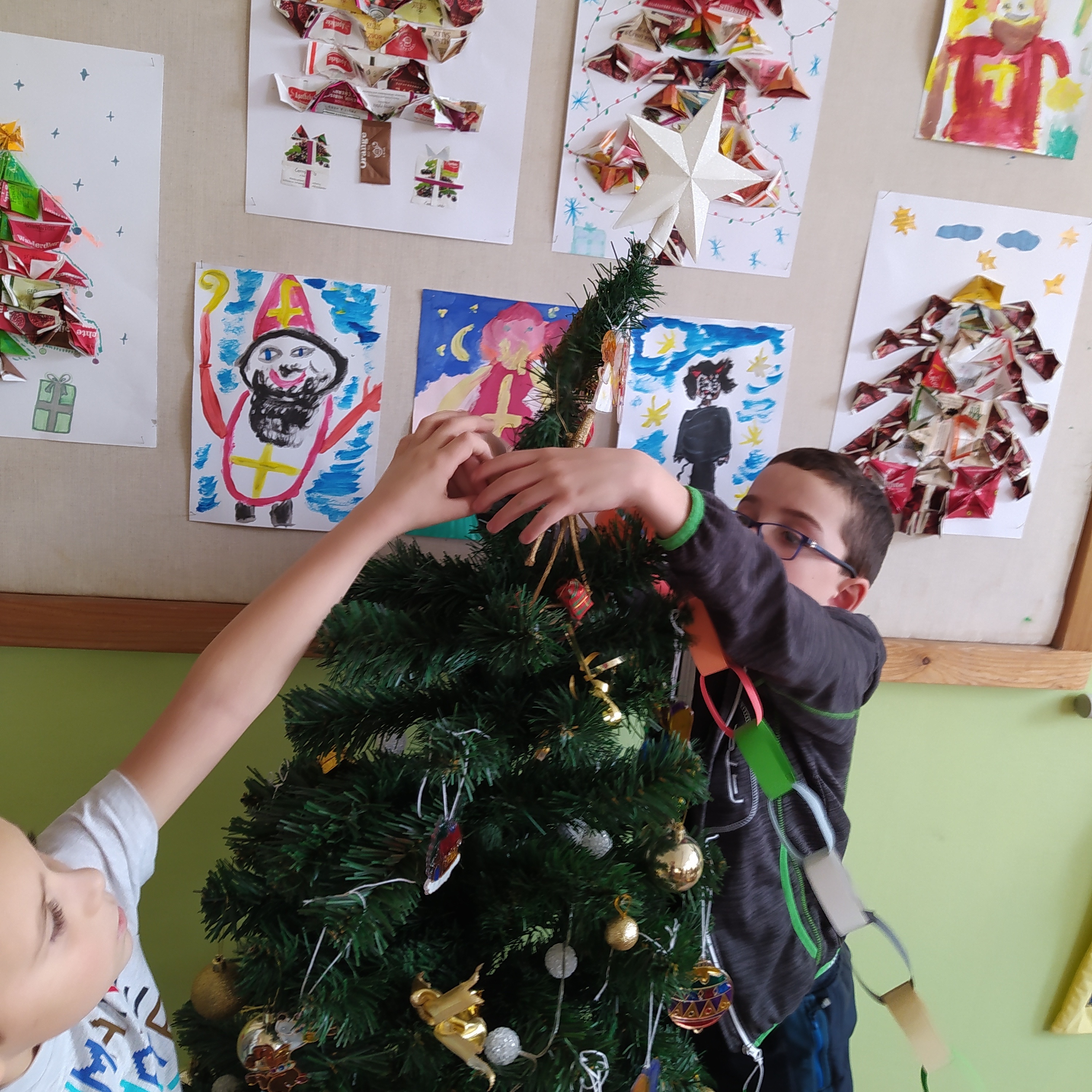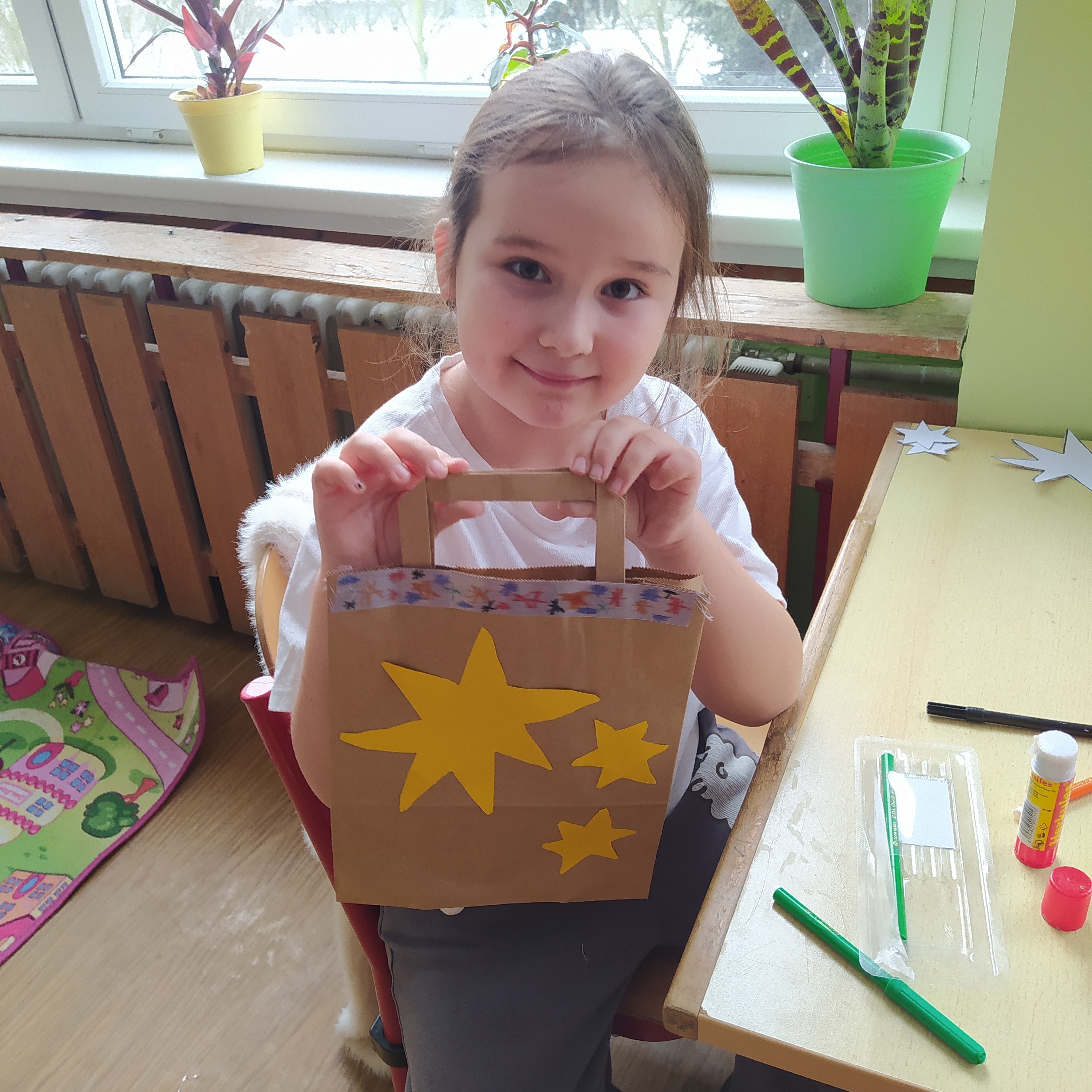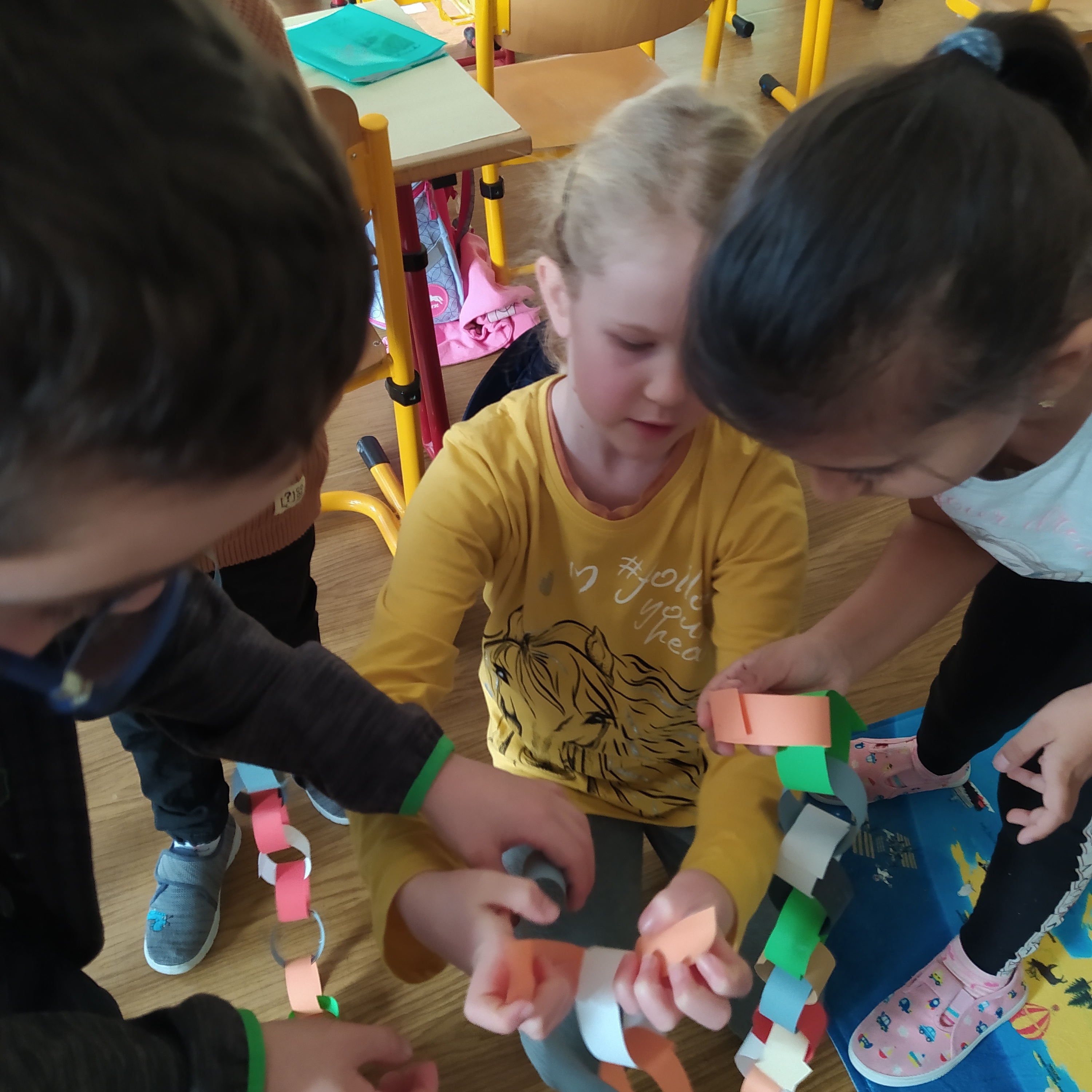 Vytvořili jsme si vánoční věnec, vánoční papír na dárky, vánoční řetěz na stromeček a vánoční dárkovou tašku.