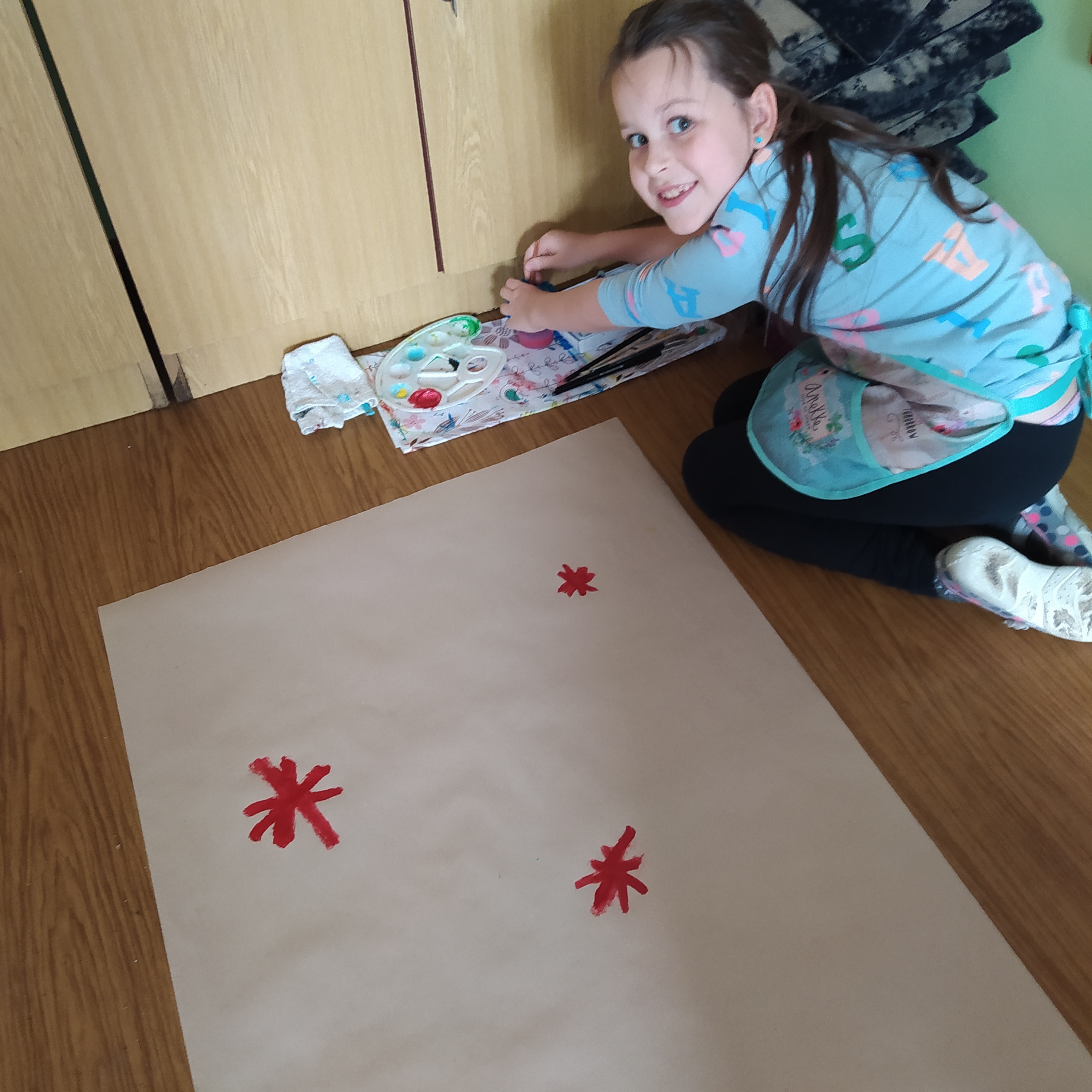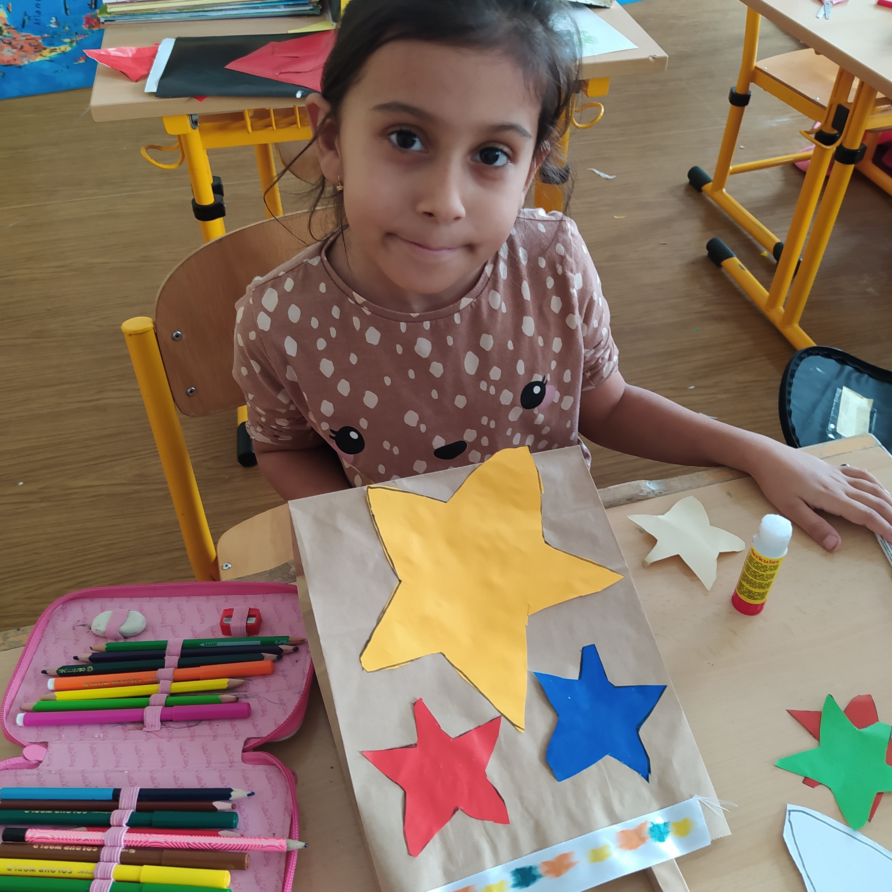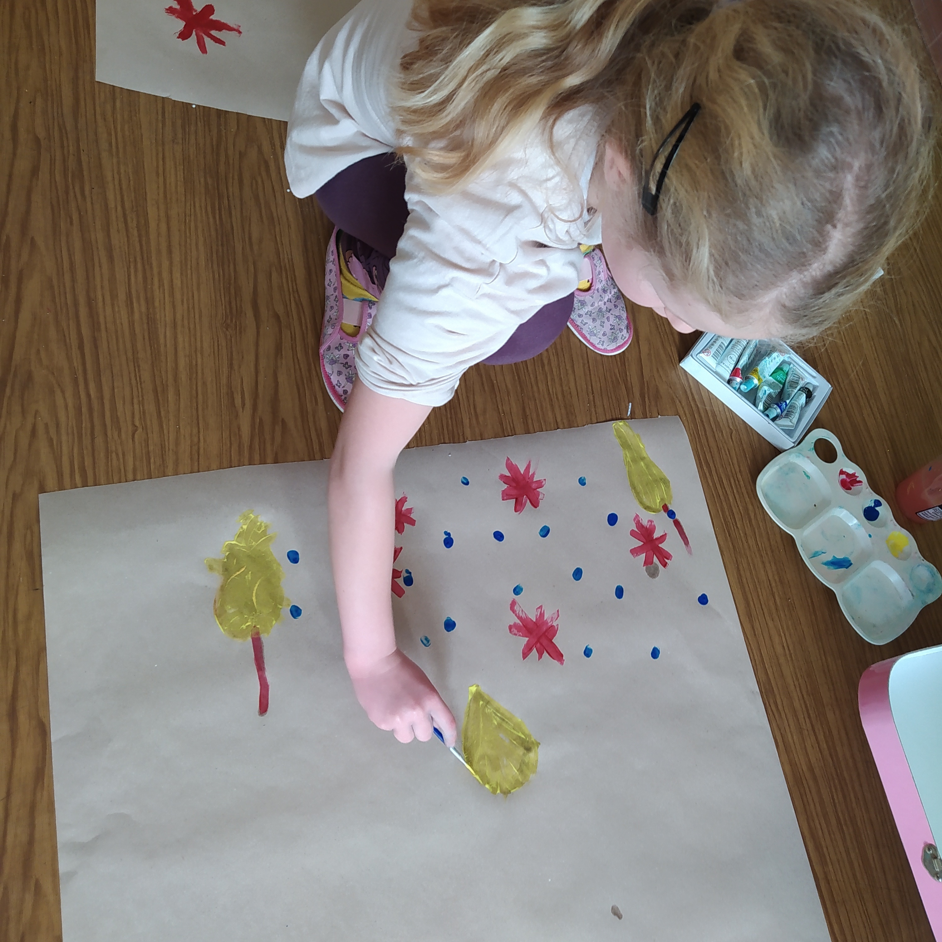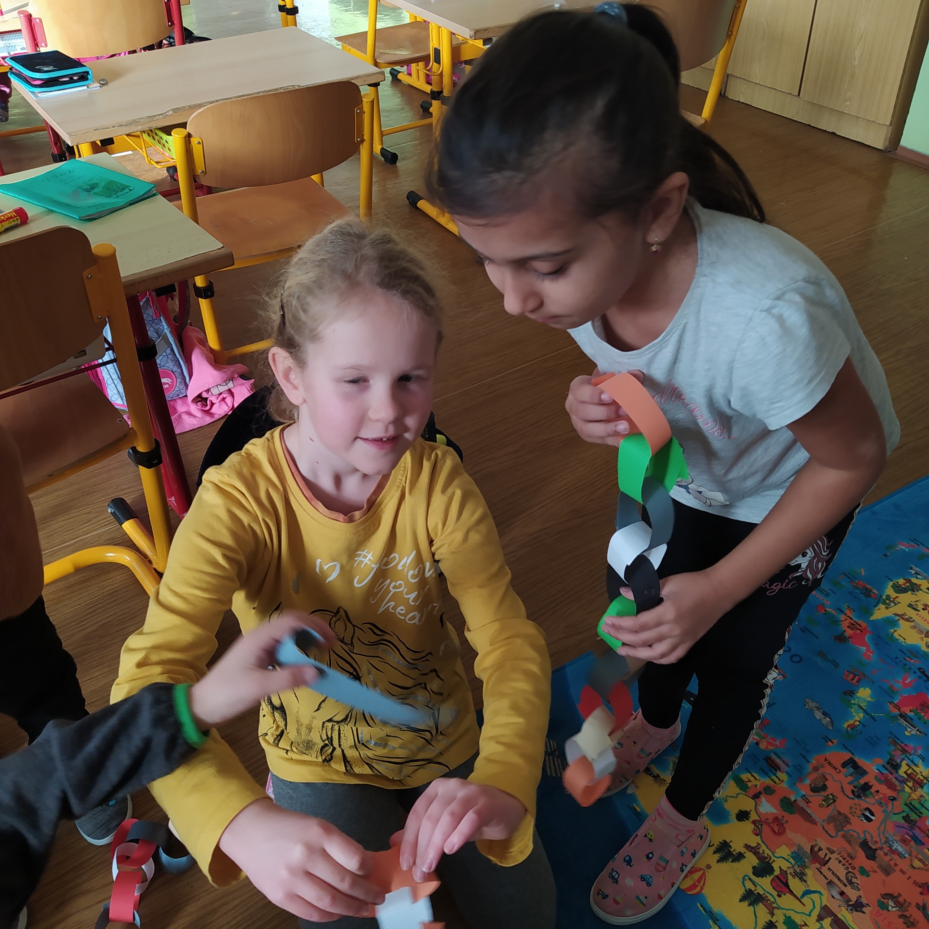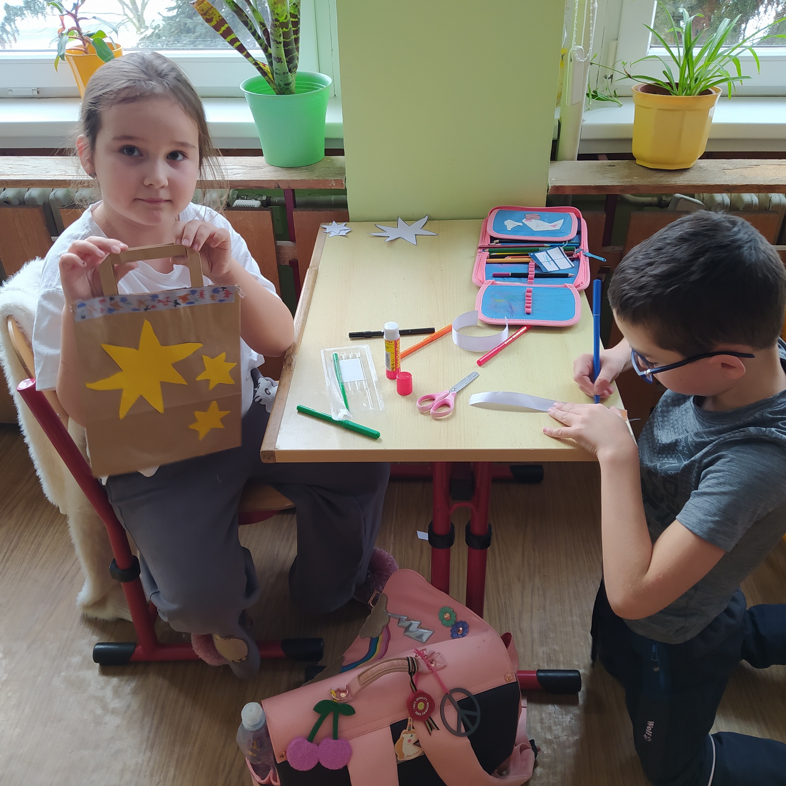 Vytvořili jsme si vánoční věnec, vánoční papír na dárky, vánoční řetěz na stromeček a vánoční dárkovou tašku.