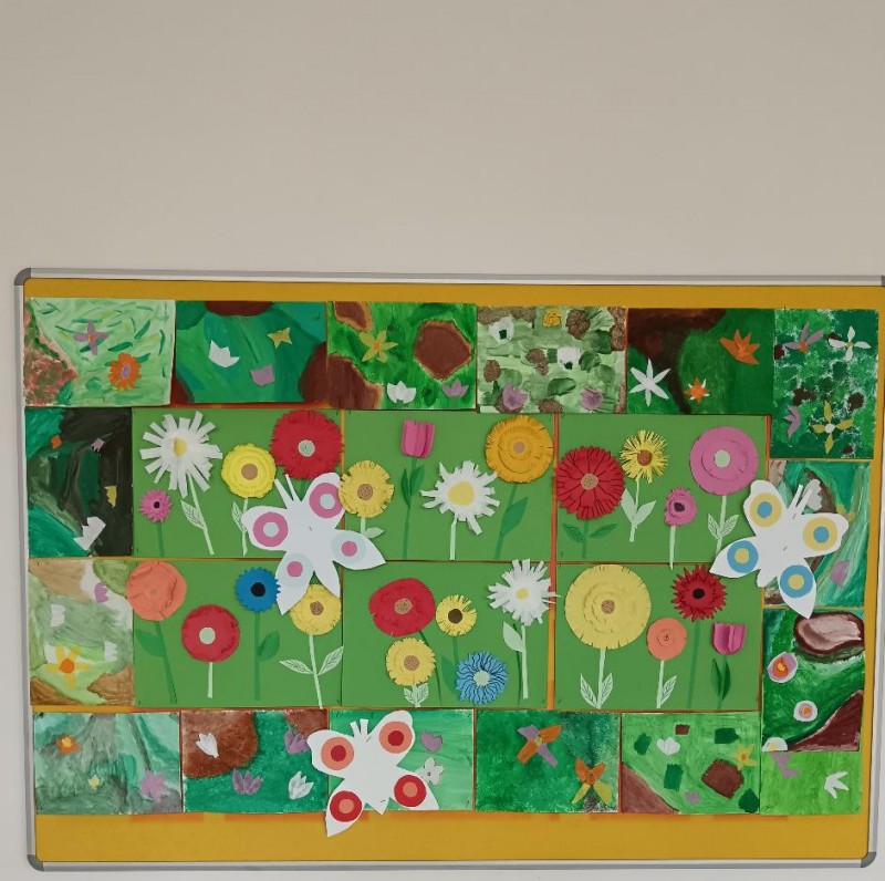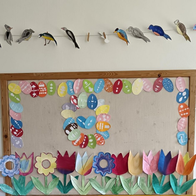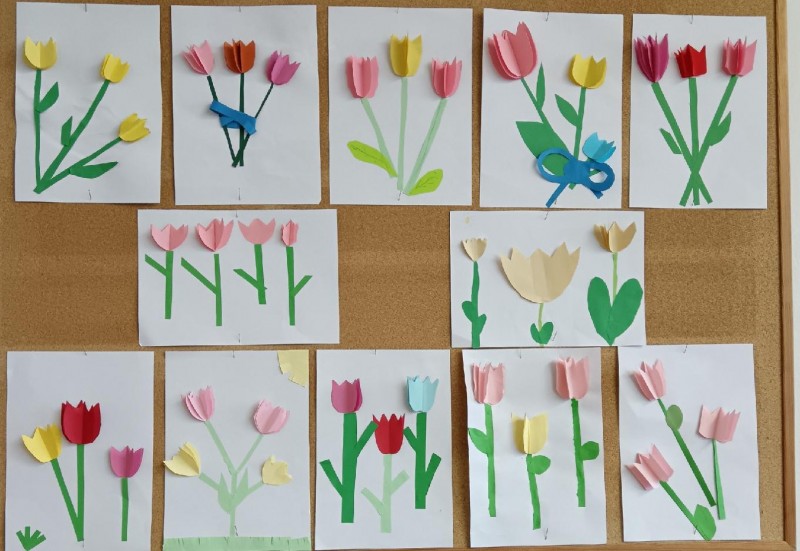 V hudební výchově jsme začali písničkou od Šípa a Uhlíře ,,Jaro,jaro je tu,zima už nemůže....." a pokračujeme tvorbou jarních dekorací.