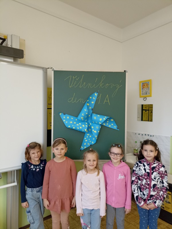 Společnými silami jsme vytvořili a ozdobili velký větrník.
