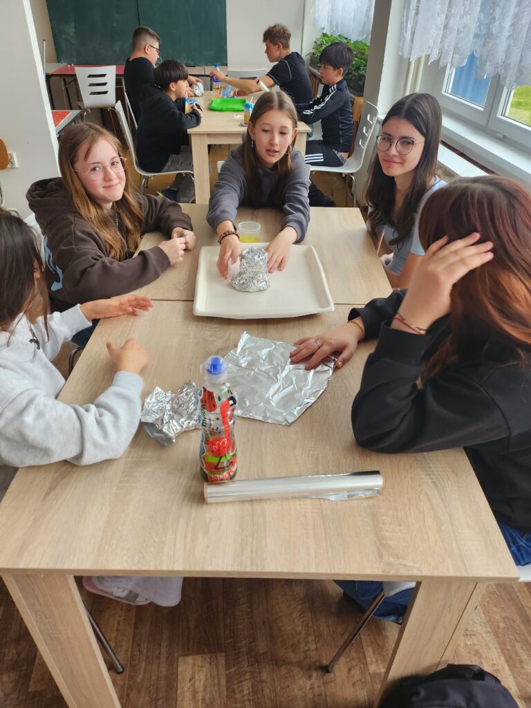 V hodinách zeměpisu jsme se věnovali pohybu litosférických desek, a tak jsme si na vlastní kůži vyzkoušeli, jaké to je, když vybuchne sopka. Nejprve jsme si sopku vytvořili, poté ji naplnili potřebnými ingrediencemi, a nakonec přišel ten pravý „wow efekt“. Výbuch jsme několikrát zopakovali, hodně jsme se u toho pobavili a zároveň se i něco naučili – nejen o samotném procesu erupce, ale především o týmové spolupráci.
