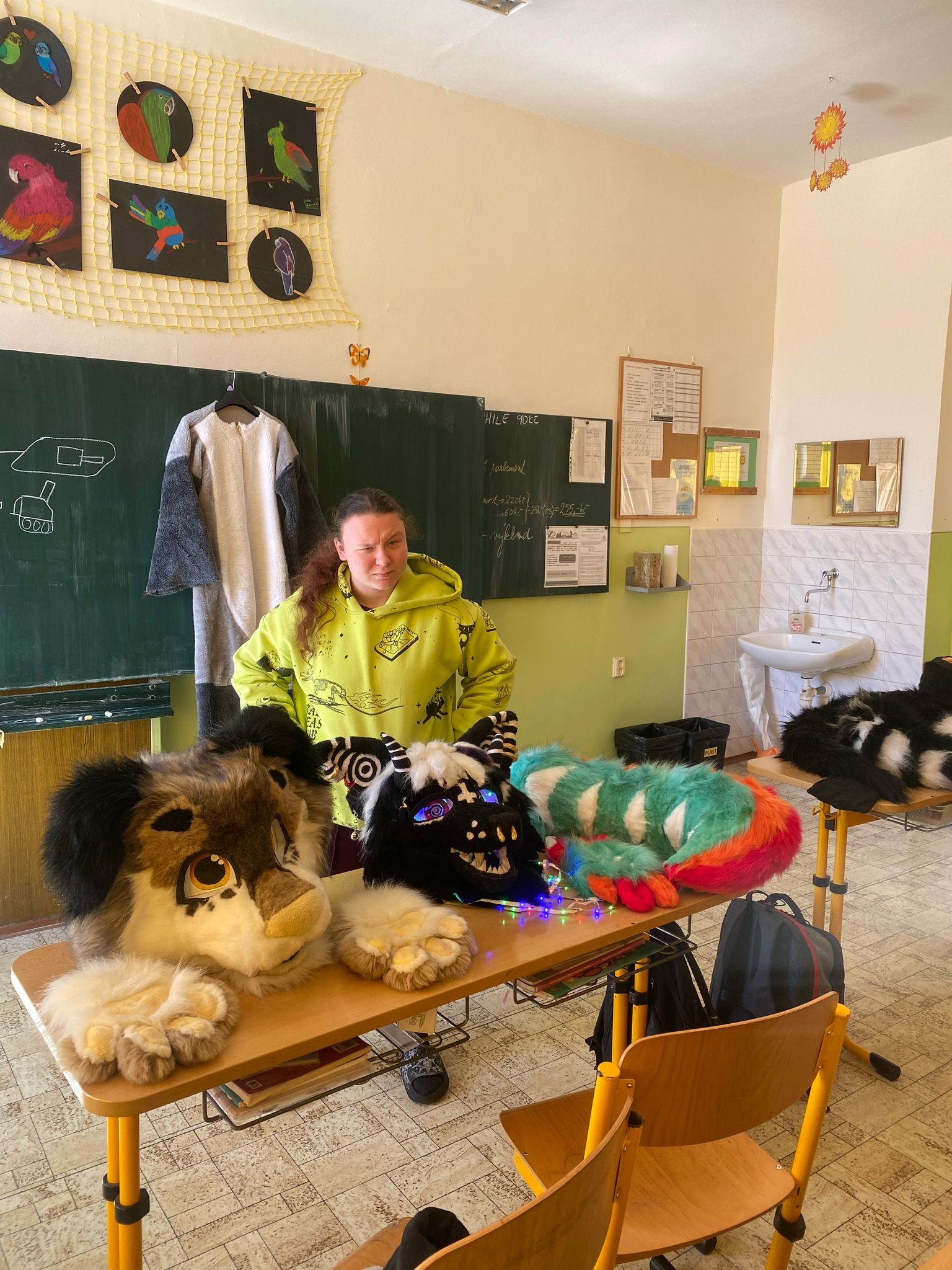Žofka nám 3. dubna udělala na hodině českého jazyka zajímavý výklad o Furry komunitě. Dozvěděli jsme se mnoho novinek, které se jen tak někdo nedozví. Přinesla nám do třídy své výtvory, které si sama ušila a ozdobila. Výklad trval 28 minut a každou minutu se celá třída dozvěděla něco nového o její zálibě. Děkujeme Žofi!