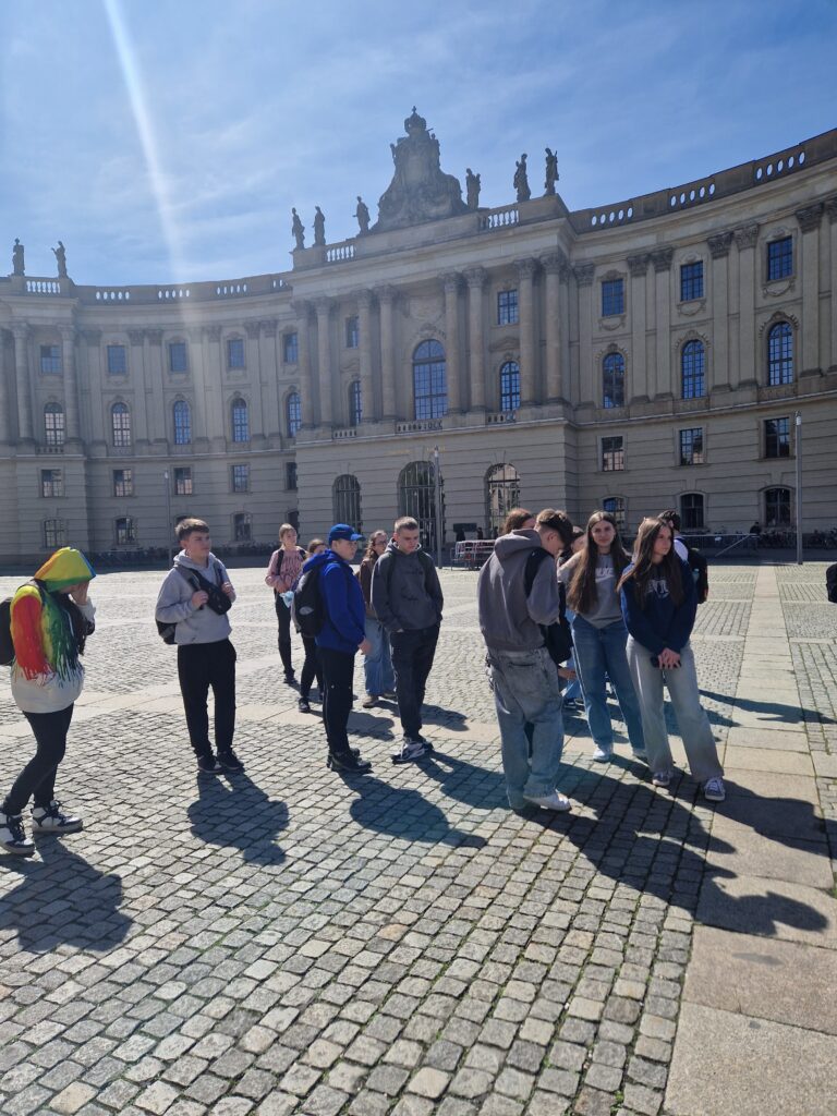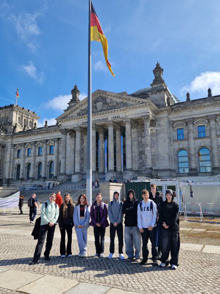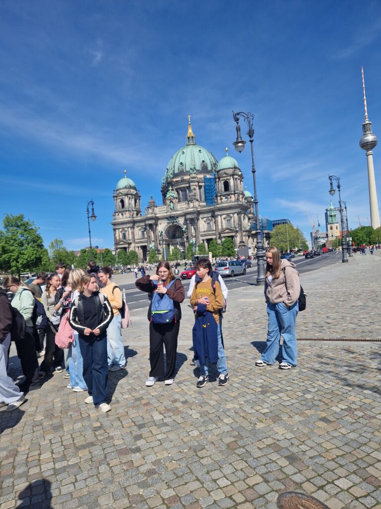 V pátek 25. 4. jsme s žáky 8. a 9. tříd v rámci vyučování němčiny navštívili hlavní město Německa, Berlín🇩🇪. Na vlastní oči jsme tak viděli to, co známe z obrázků v učebnici - monumentální Braniborskou bránu, Reichstag s jeho prosklenou kopulí, Humboldtovu univerzitu, pozůstatky Berlínské zdi, Památník holokaustu, světové hodiny, muzeum trabantů, checkpoint Charlie, hraniční přechod mezi východním a západním Berlínem a mnoho dalšího. Největšími zážitky byly výhled z proslulé televizní věže vysoké 368 m a plavba lodí po řece Sprévě. Celý den jsme si skvěle užili, počasí bylo překrásné🌞🌞🌞. A i když už nás nohy hodně bolely, neopouštěla nás dobrá nálada a v noci jsme se domů vrátili v rozezpívaném autobuse 🥰👍