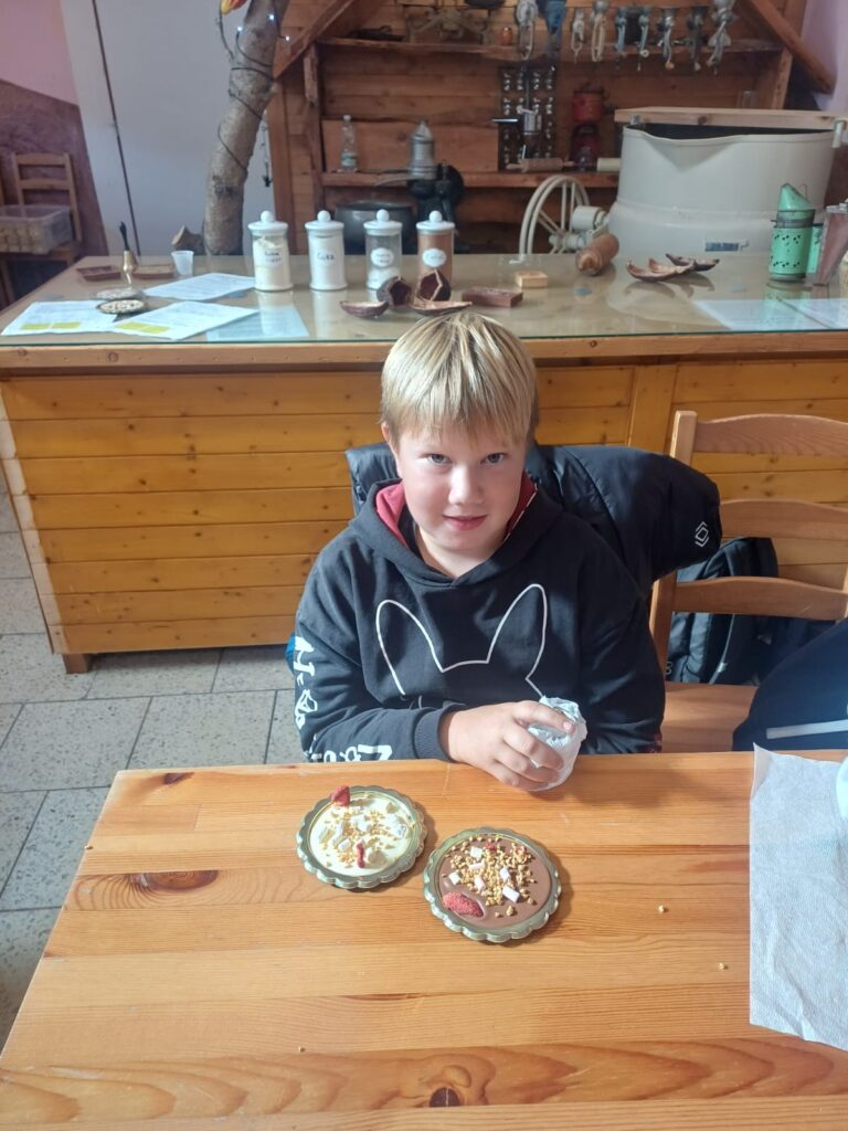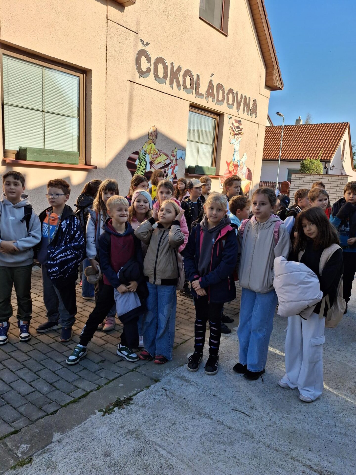 Děti ze 4. a 3. B navštívily 30. září čokoládovnu v Šestajovicích. Nejprve je zaujala místní domácí zvířátka a poté si vyzkoušely výrobu čokoládových dárečků. Výlet se všem moc líbil.