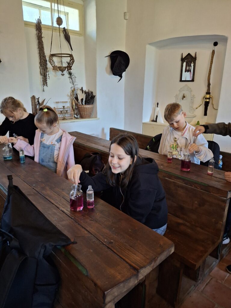 Blíží se ČARODĚJNICE, tak je nejvyšší čas naučit se nějaký lektvar. A právě to čekalo na děti ze třetích tříd. V kouzelném prostředí si také upekly perníčky a namíchaly voňavou sůl do koupele. Moc jsme si dopoledne v Košátkách užili.