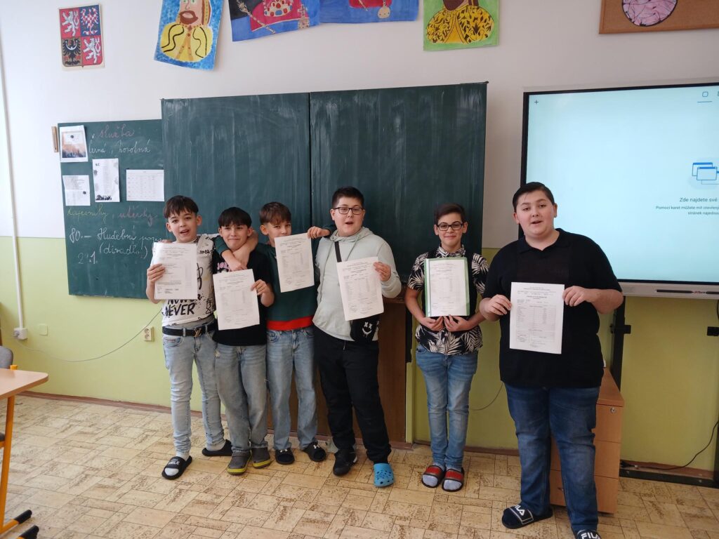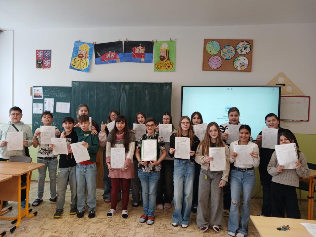 Dnes jsme poprvé na druhém stupni převzali svá vysvědčení za první pololetí školního roku. Pro mnohé to bylo období plné nových výzev, změn i zvykání si na vyšší nároky. Někteří ukázali snahu, zodpovědnost a chuť se zlepšovat. Velká gratulace patří především Elišce, Lauře a Adélce, které si vybojovaly vyznamenání. Vysvědčení je pro nás především zpětnou vazbou a motivací do další práce.
