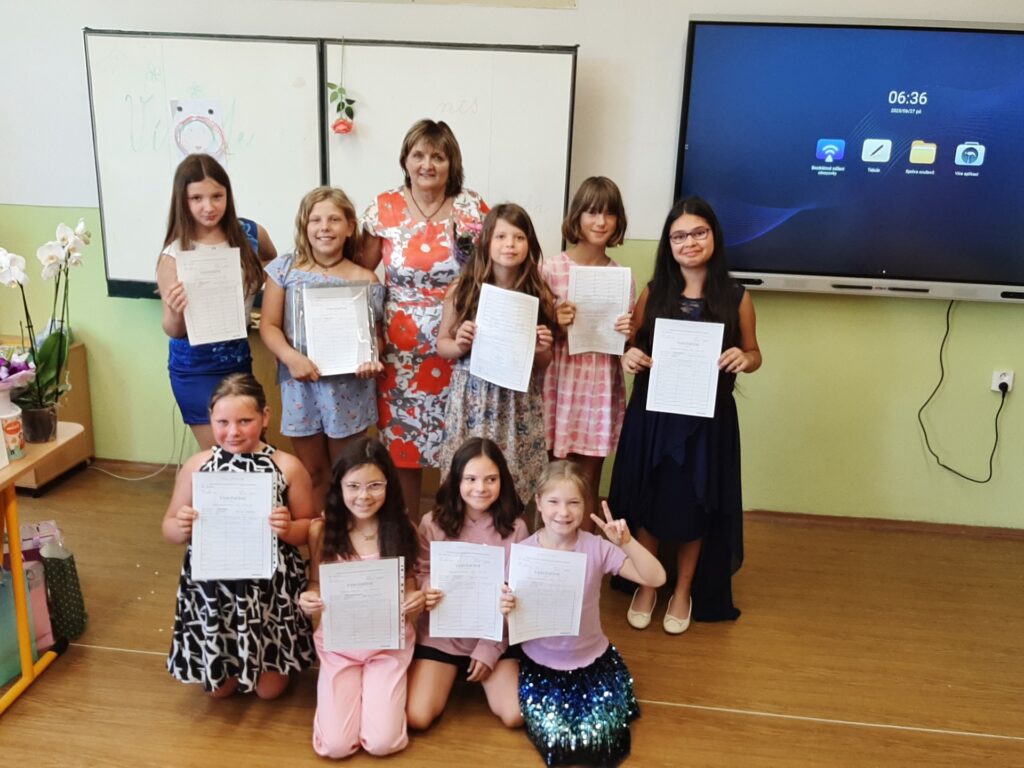 Páteční ráno 27. června bylo pro nás slavnostní, protože jsme si přišli do školy pro vysvědčení.