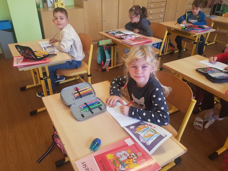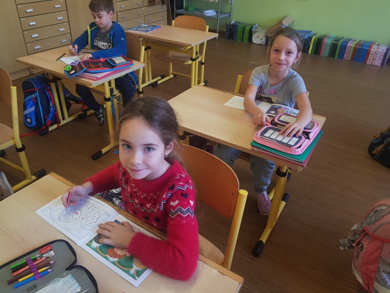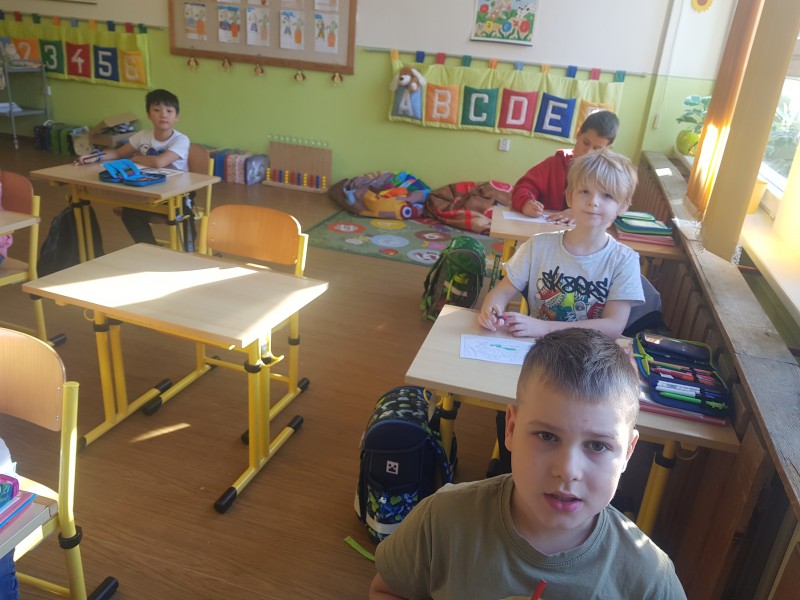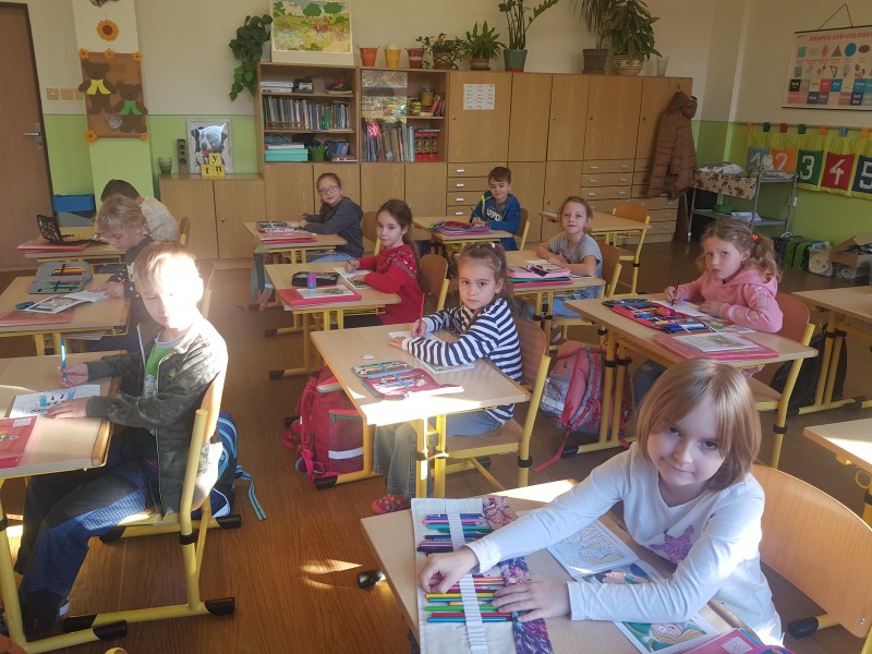 Omalovánky si děti vybarvily, nahlédly do herecké šatny, seznámily se s pojmy opona, režisér, osvětlovač a společně jsme zavzpomínali na včerejší zábavné představení školáka Tomíka, který se ocitl ve světě dinosaurů. Našel tam spoustu kamarádů.