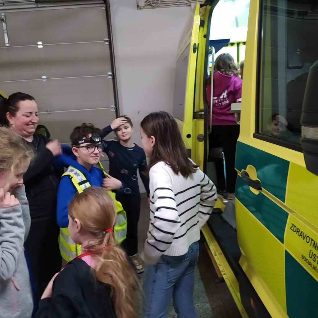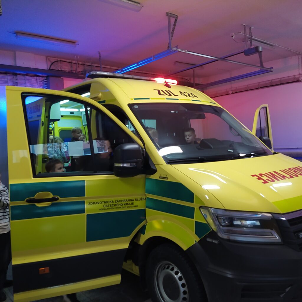Navštívili jsme Zdravotnickou záchrannou službu v Lounech, kam nás pozvala maminka našeho spolužáka.