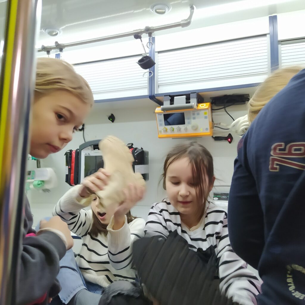 Obdivovali jsme sanitky, jejich vybavení a zahráli si i na záchranáře.