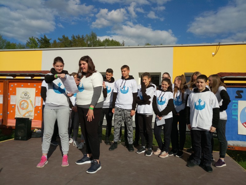 Po obědě byl první nástup, kde jsme se dozvěděli jakou hru budeme letos hrát - Star Wars a jak to bude organizované. Jsme ve skupině rytířů Jedi.