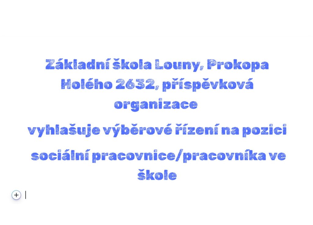 Základní škola Prokopa Holého 2632, příspěvková organizace vyhlašuje výběrové řízení na pozici sociální pracovnice/pracovníka ve škole. Více informací v příloze. Svoje strukturované životopisy s doklady o dosaženém vzdělání zasílejte do 28. 2. 2026 na mailovou adresu: dinkova@zslounyholeho.cz.