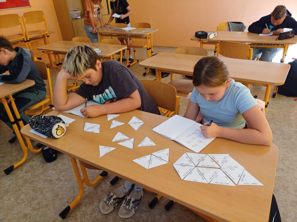 CvM -skupinová práce- TRIMINO – sčítání a odčítání. Úspěšní řešitelé Filip a Erik.